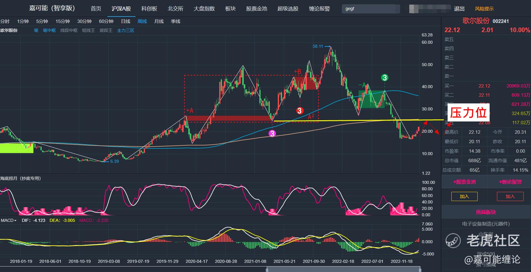周五消费电子股歌尔股份(002241)在底部放量涨停。而且量还挺大。成交额突破65亿。