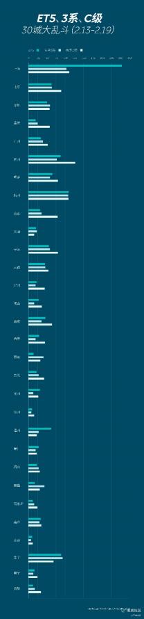 以前很多宝马迷都在说“蓝天白云梦”,还说梦的起点是因为宝马三系,因为操控性和运动氛围很够,但是,现在的现实是,这个梦的终点可能是因为有了蔚来ET5。最近在网上看到了一个今年第八周的销售数据,名字居然叫“三十城大乱斗”。虽然大量的数据图显得有点凌乱,但还是能看出很明显的一点:ET5在上海已经超过宝马三系和奔驰C级了,而且在不少重要城市有拉锯战的意思了。所以,蔚来缠斗BBA还真有这事。