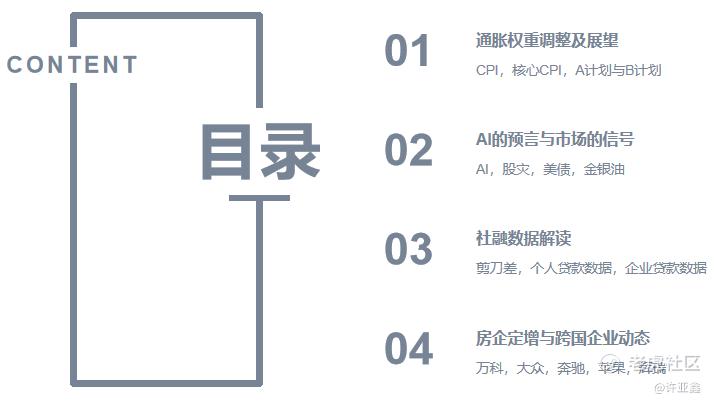 刚刚,我进行2月份的第六节实战点评,分别从“通胀权重调整及展望”,“AI的预言和市场的信号”,“社融数据解读”和“房企定增与跨国企业动态”四个方面解读了基本面的一些信息,并结合CPI,核心CPI,A计划与B计划,AI,股灾,美债,金银油,剪刀差,个人贷款数据,企业贷款数据,万科,大众,奔驰,苹果,辉瑞等给出了接下来的布局思路。