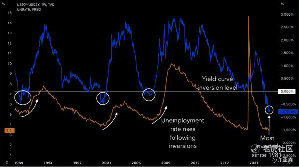 此外,上周美国2年期国债收益率与10年期国债收益率的倒挂幅度进一步加深,创下了1980年代初以来之最。投资者担忧,收益率曲线倒挂预示着经济阵痛将至,即经济衰退即将到来。