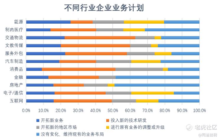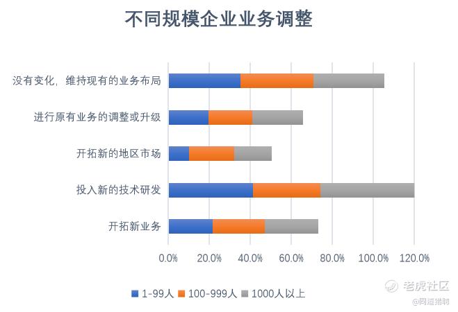 同时也可以看到不同规模企业也有不小比例都在维持现有业务布局,整个经济环境受疫情情况演变,在本季度采用稳定的发展战略,维持现有业务布局。