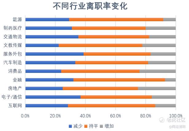 从不同行业来看离职率预期,在能源行业、电子通信行业的技术类岗位离职率相对较高;