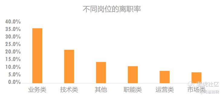 技术类人才紧随其次,企业认为这类岗位人才离职可能性大,这类人才一般是涉及企业发展核心环节所在,企业HR需要重视。