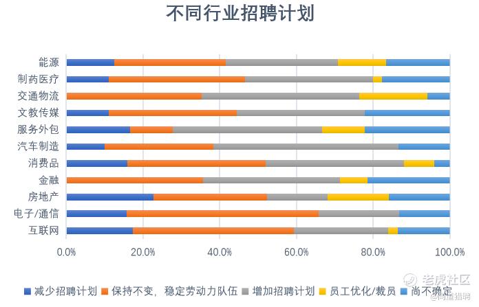 与四季度相比,一季度计划减少招聘计划的企业增加了一成,企业整体上会从战略和市场策略方面进行调整和准备,以期在后半年发展中能够获得更好的机会。