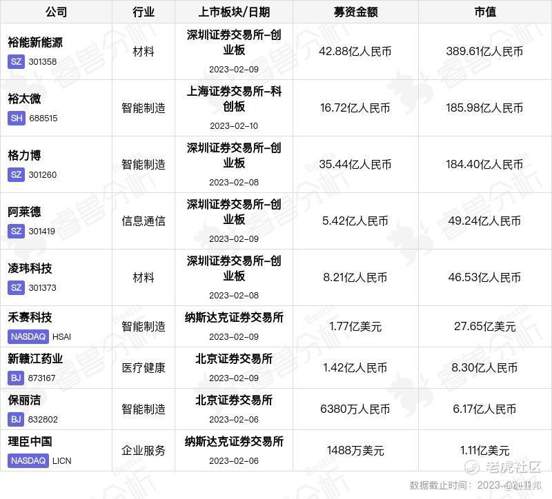 本周重点监测到国内上市公司共9家。分别位于创业板、科创板、北交所、纳斯达克。最新市值最高为「裕能新能源」389.61亿元人民币。