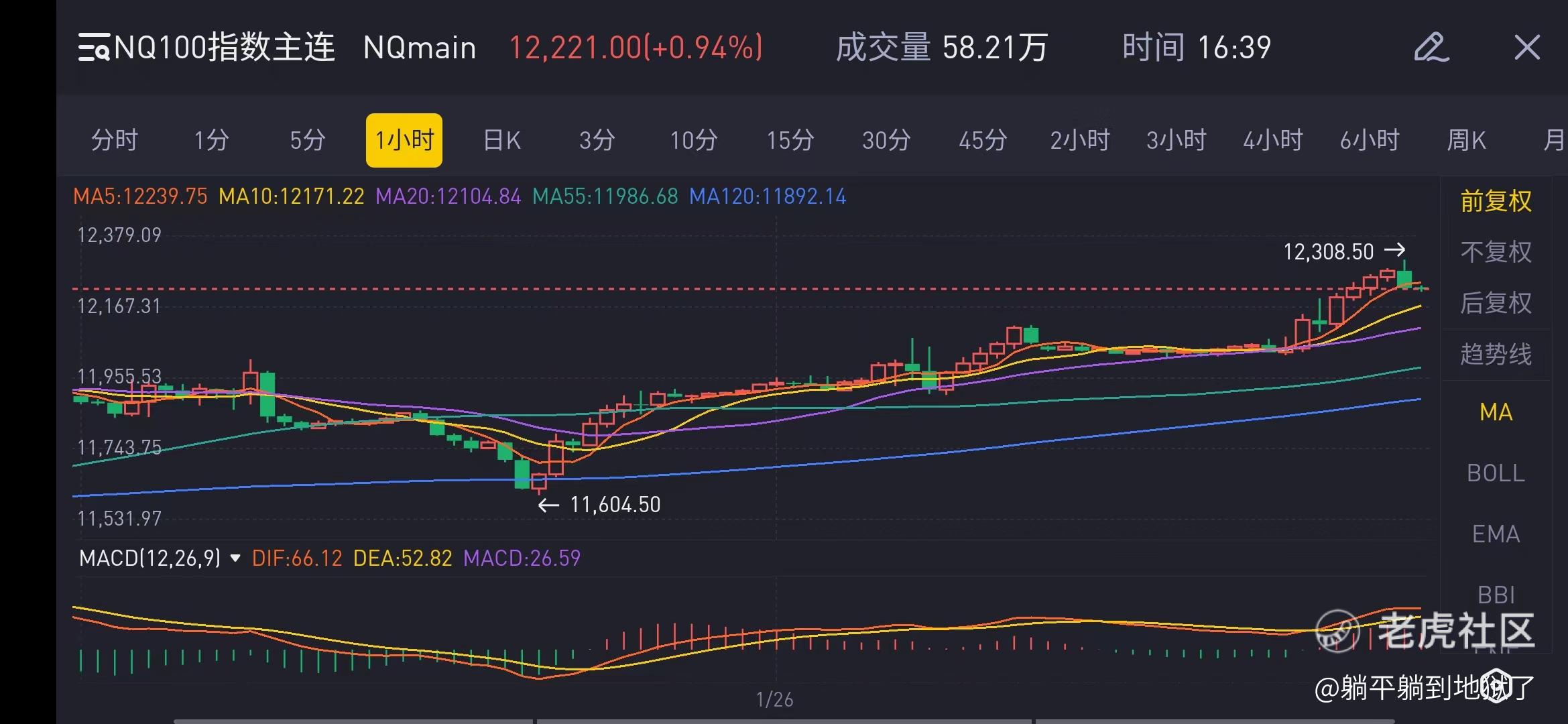 三、NQ100期指复盘(附60分钟走势图)(60分20均线是指数强弱的重要分水岭,是个人短期常用的进场出场点)
