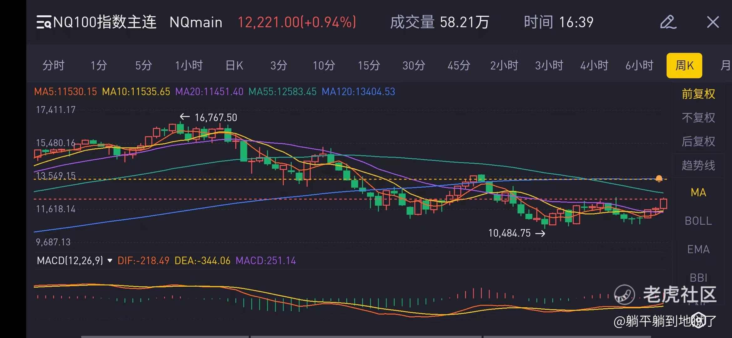 下周走势预判:日线20均上,多头趋势;周线20周之上,多头趋势(重要),预计沿5日均线振荡攀升,日内调整都是入场好机会:压力位55周均线12583(2.96%);支撑位10日均11784点。