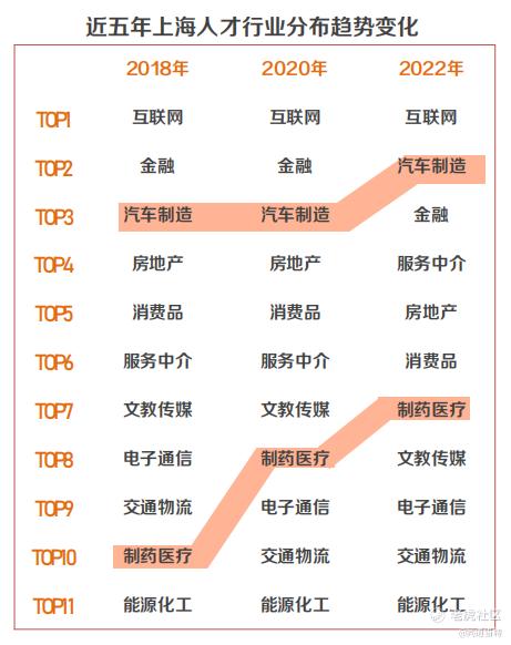 近5年上海人才行业分布趋势变化数据显示,汽车制造、服务中介、制药医疗行业人才逐年攀升,在“十四五”规划中,上海将在高端制造、生物医药产业中重点发力,欲吸纳相关人才。而后疫情时代的到来对于服务行业是一把双刃剑,零售门店运营的不确定性以及旅游行业的发展停摆使得相关行业人才涌入招聘市场,但同时也拉动更多宅经济相关行业供需增长,如电商领域、物流配送,基础服务发展迅猛,人才供需旺盛。