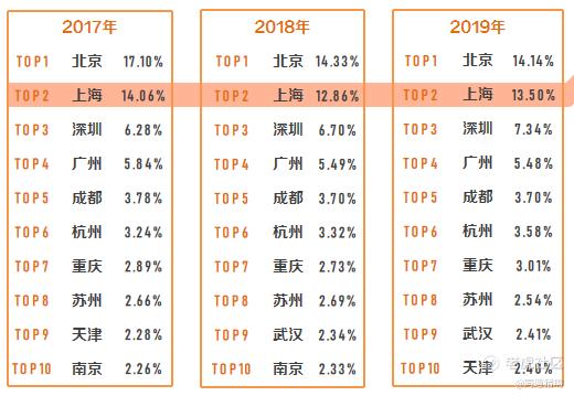 ▌ 近三年上海地区企业招聘需求量全国占比第一