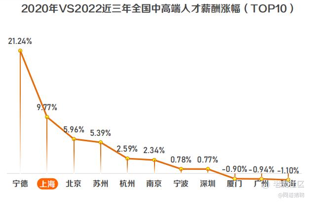 ▌ 上海中高端人才薪酬持续走高,涨幅位居全国第二