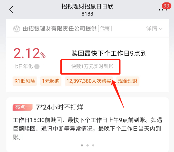 它底层产品是5个货基,每个货基有一万快赎额度/天。