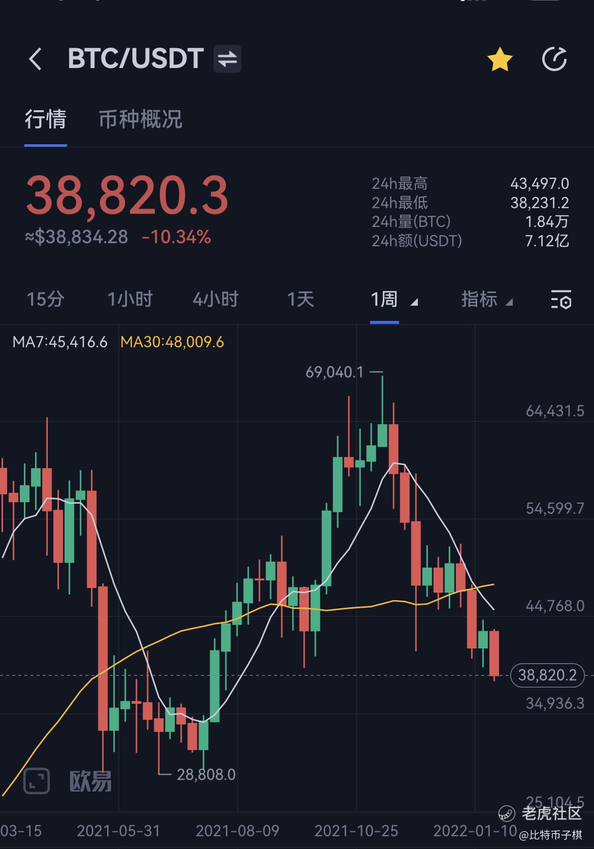 BTC今日再次暴跌试探$3.8万支撑位,$4万已经跌破,若不能短期内修复则有可能进一步试探底部!