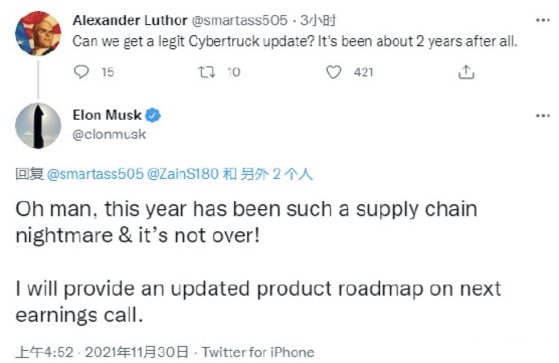 单就财报来看,特斯拉的表现算是好坏参半,虽然营收受到了碳积分和比特币的影响,不过因为中国力量,特斯拉净利的表现可以算是优秀了,不过财报后的电话会议中,无论是Cybertruck量产时间未明,还是量产目前,或供应链问题,都难以让市场满意。