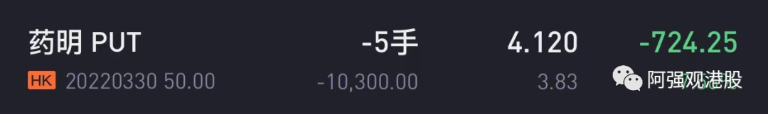 刚才想直接买药明生物02269的股票,不过觉得可能还会继续跌,于是用卖PUT期权的方式抄底,卖出3月30日到期,行权价50的期权