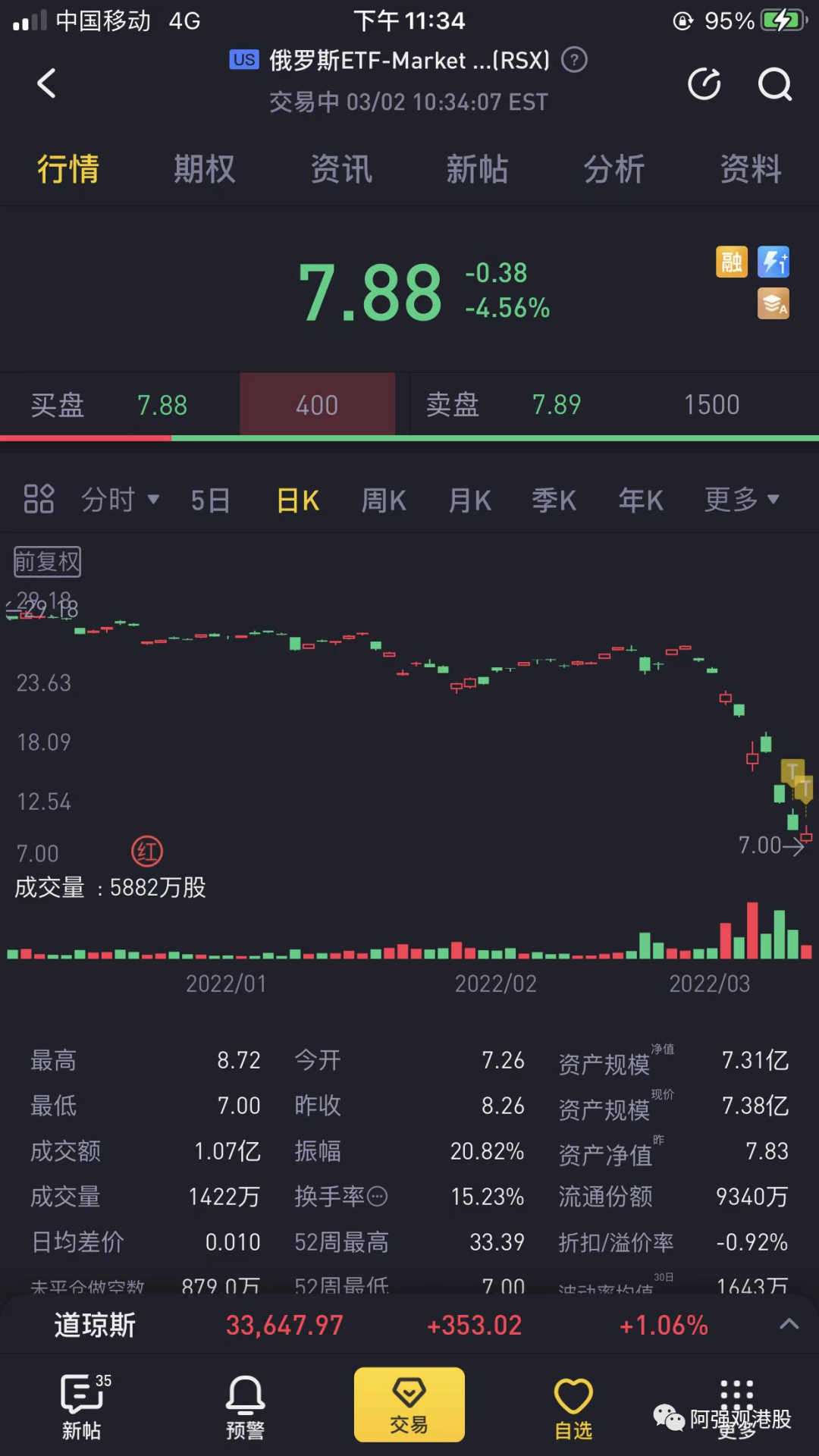 如果非要抄底俄罗斯,则选择俄罗斯基金ETF就行,代码是:RSX ,目前股价是 7.88美金