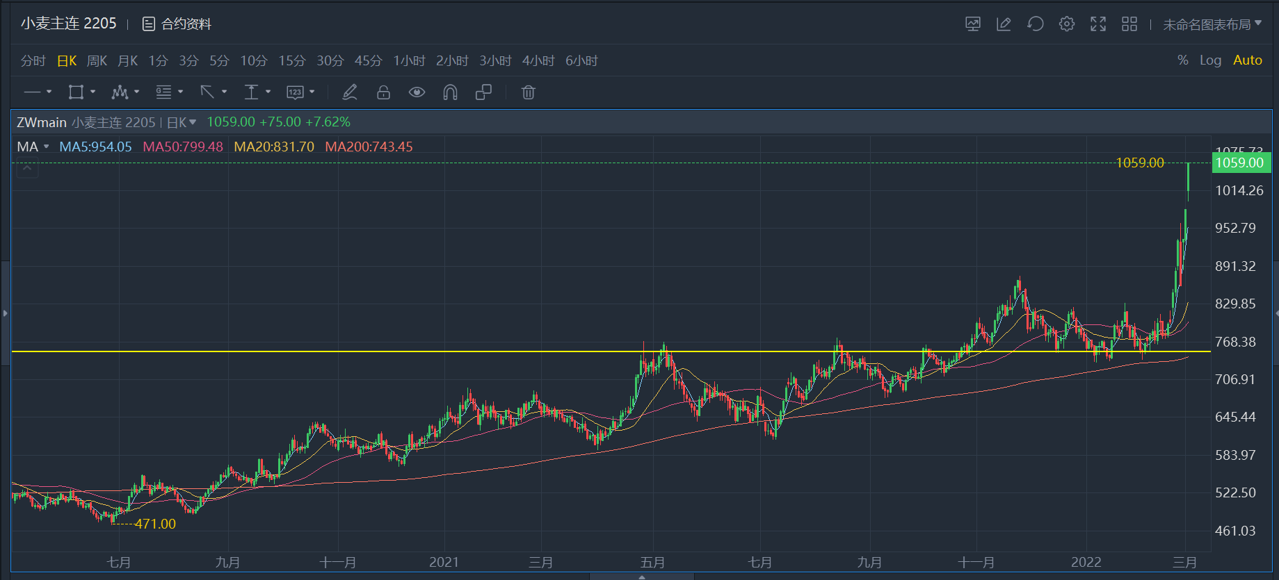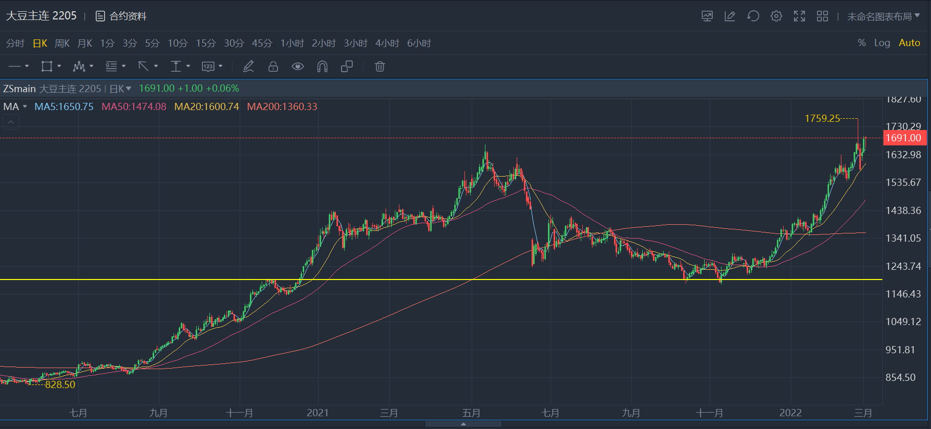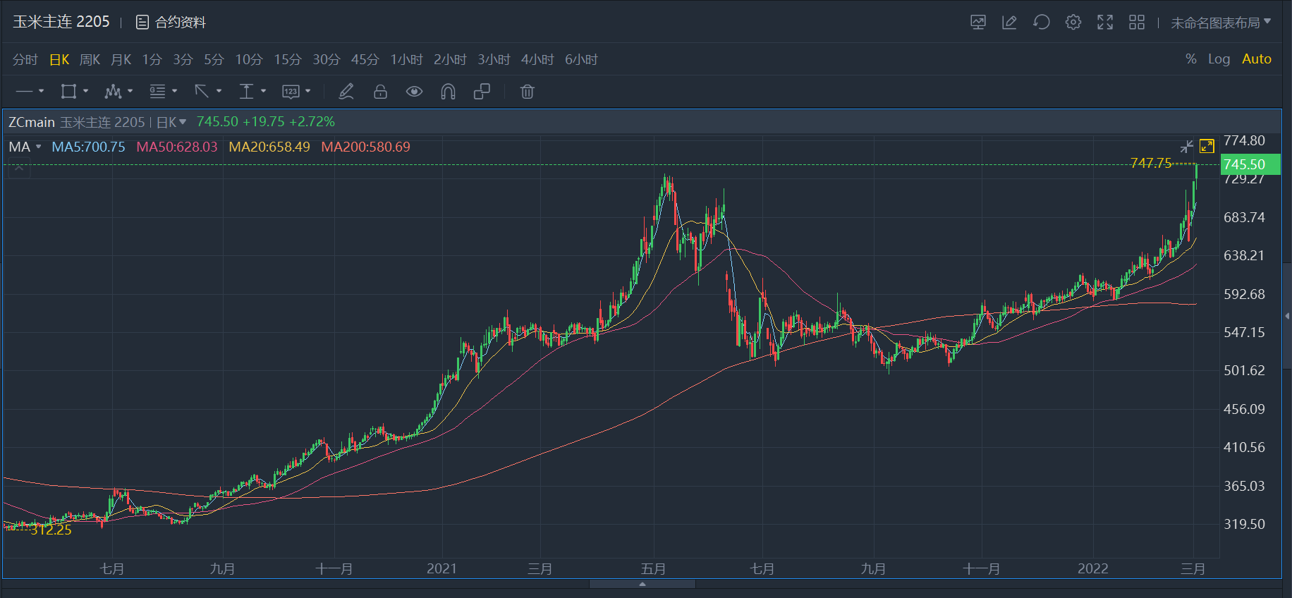 $玉米主连 2205(ZCmain)$ $大豆主连 2205(ZSmain)$ $小麦主连 2205(ZWmain)$ $豆粕主连 2205(ZMmain)$ $豆油主连 2205(ZLmain)$