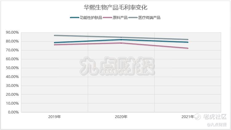 而在2019年的收入结构中,功能性护肤品的收入结构只有33.66%,占比最高的是原料产品40.37%,其次是医疗终端产品25.94%。