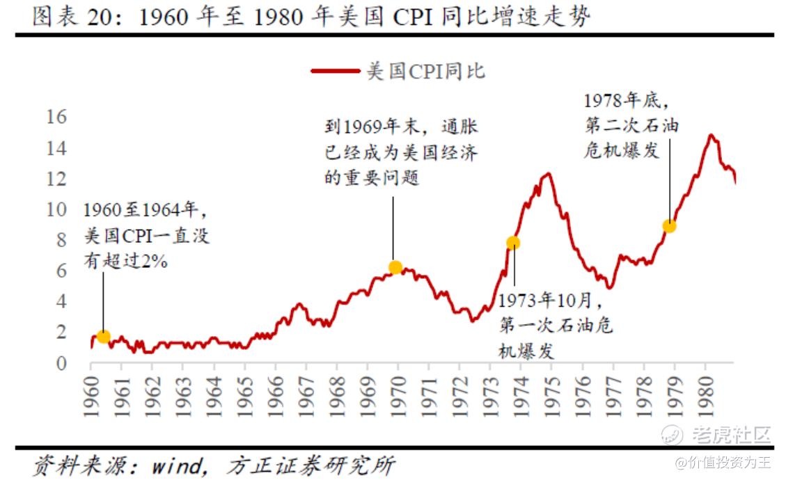 根据方正的数据,在石油危机之前,美国的CPI已经处于高位多年:
