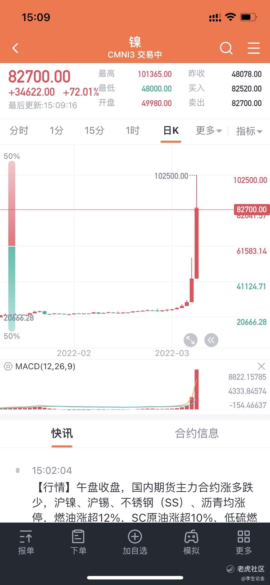 两天时间,镍的价格突破了10万美金,涨了300%,战乱之下,全球资本到处围剿。