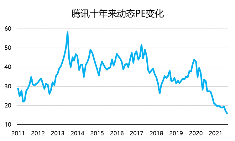 以投资者最熟悉的市盈率(PE)来看,腾讯过去12个月的动态PE在3月23日收盘仅为18倍,远远低于过去10年的平均水平,也低于2018年最低的26倍左右。