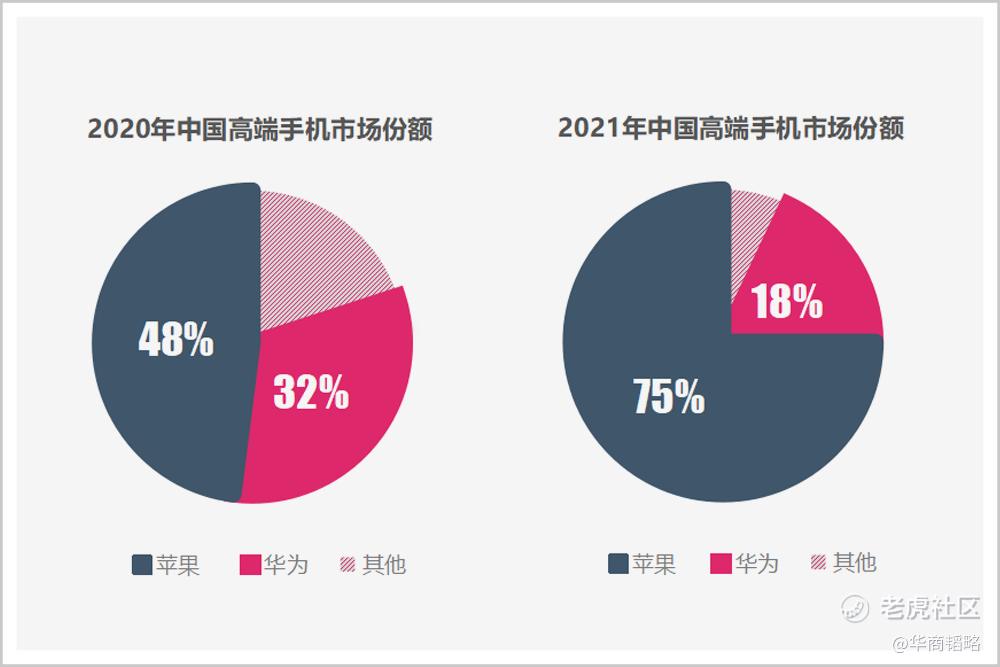 这种差距,最终体现在了市场份额上。CINNO Research的数据显示,2021年,在5000元以上高端市场,苹果的份额从2020年的48%大幅增长至75%。