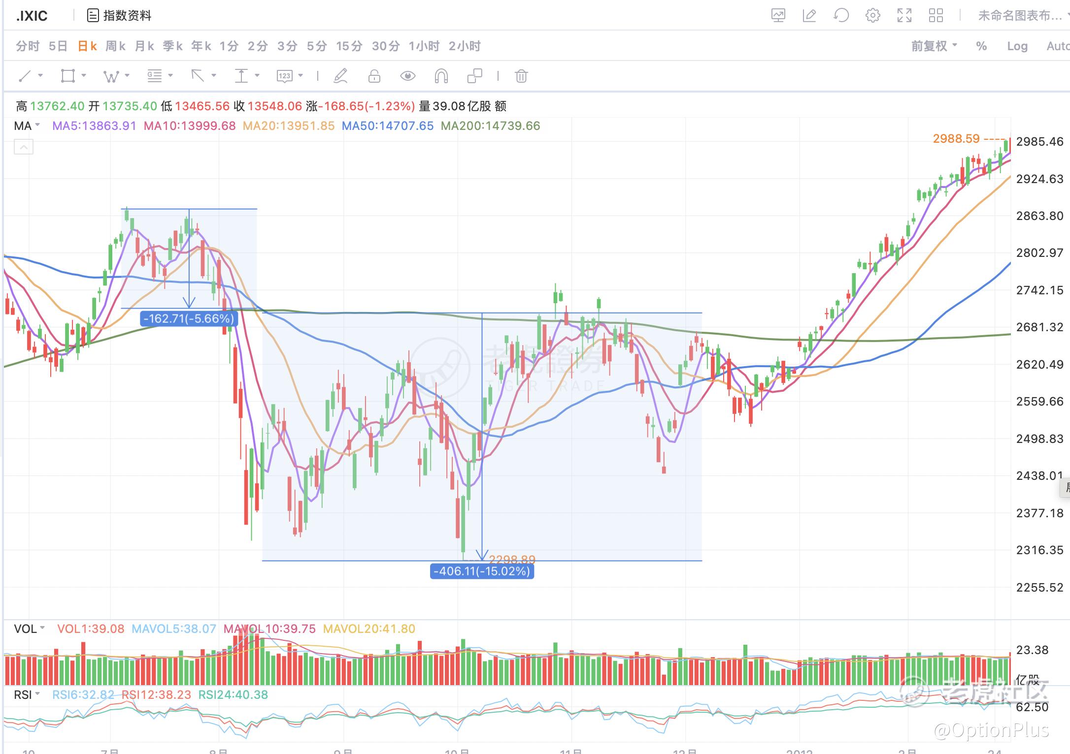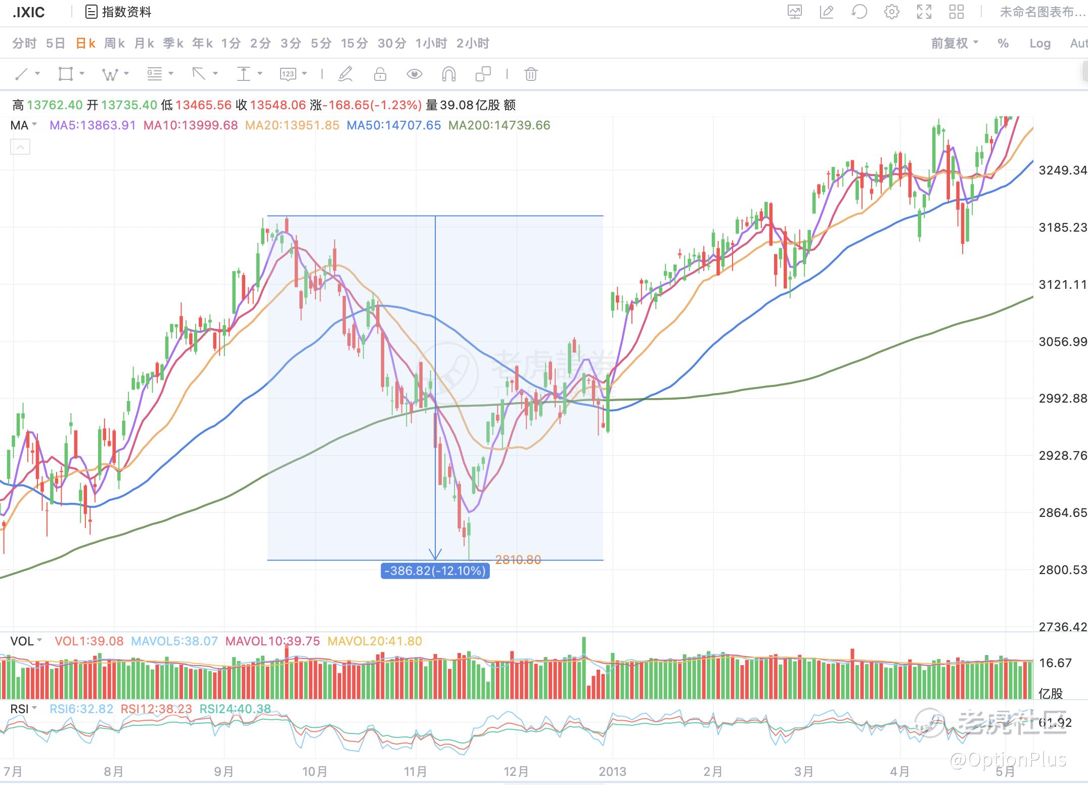 2012年50日线低于200日线只经历不到一个月,并且在此之前纳指低了12%见底反弹,更像是对2011年的一个回踩。