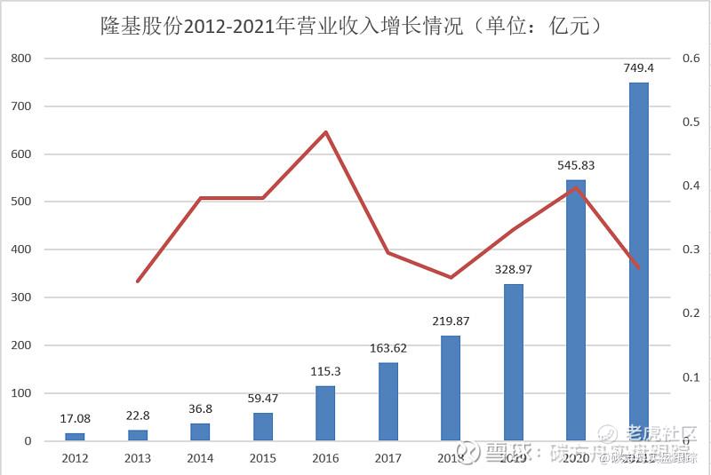 隆基股份创立于2000年,2020年股价上涨了274.37%,2021年股价上涨了31.2%。2012年公司的营业收入为17.08亿,上市近10年,公司营业收入增长超过40倍。