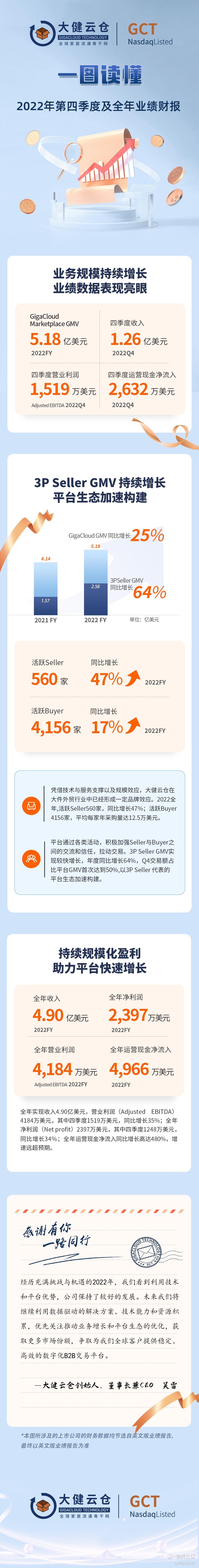 大健云仓持续盈利,2022年营业利润4184万美元