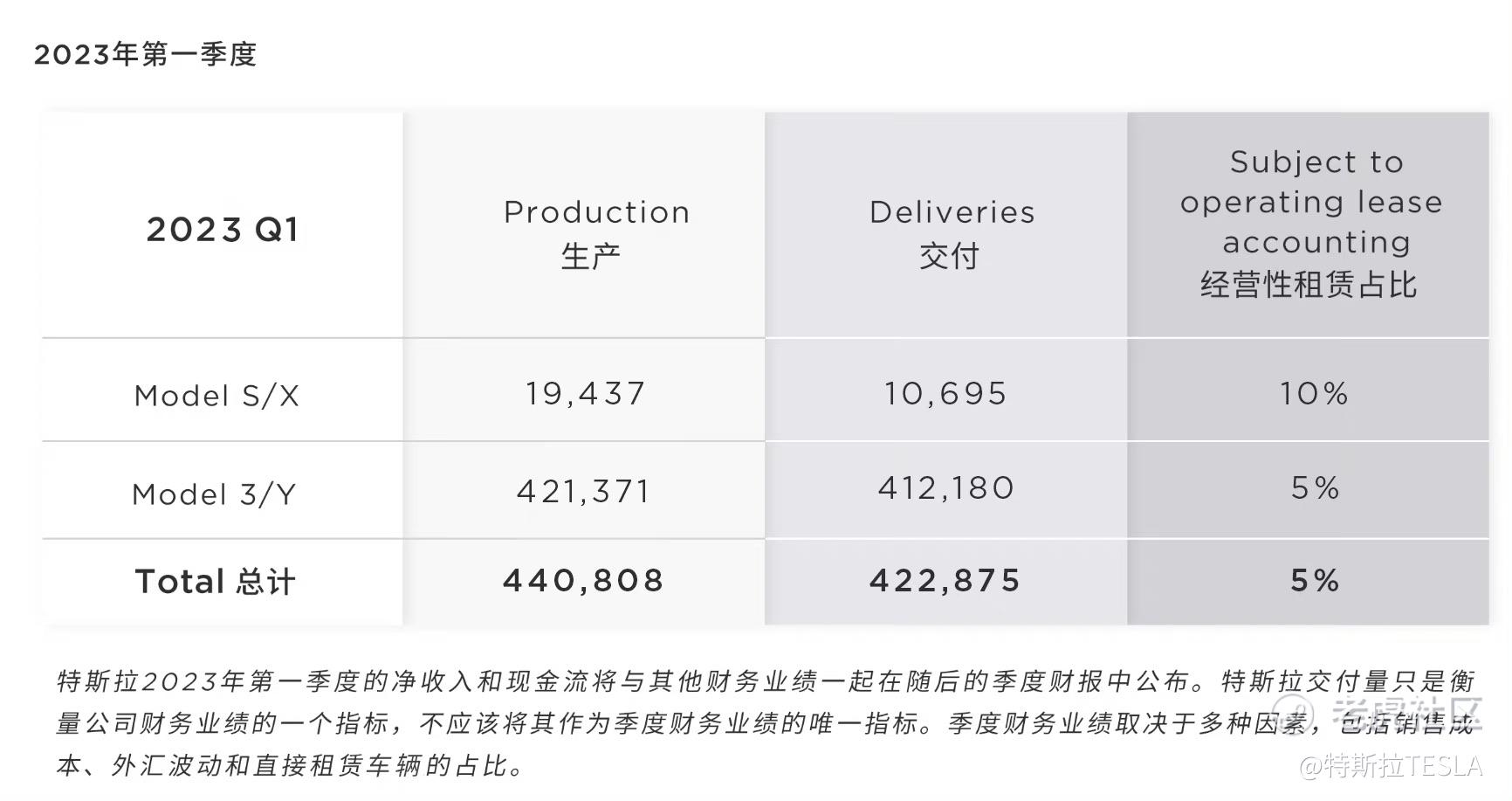 2023年第一季度,特斯拉全球生产了超过44万辆电动车,交付了超过42.2万辆电动车。