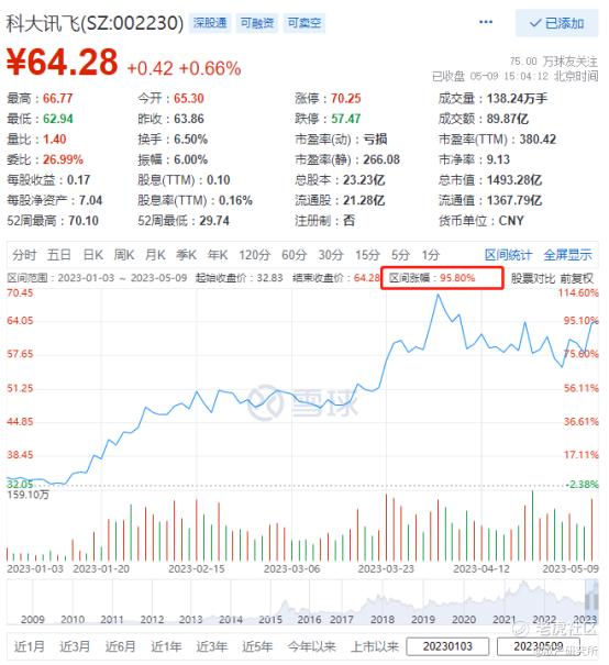 科大讯飞在语音识别和自然语言处理技术方面具有很强的技术实力和研发能力。其智能语音交互技术已经广泛应用于智能家居、智能客服、智能汽车等多个领域,并且取得了良好的市场反响。年初至今的涨幅已接近翻倍。