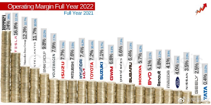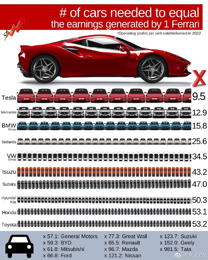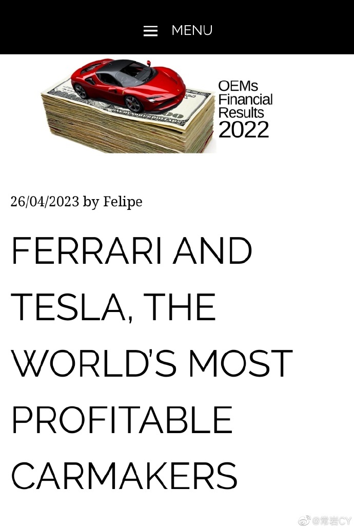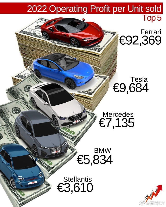 结论是,法拉利单车利润最高,其次就是特斯拉。