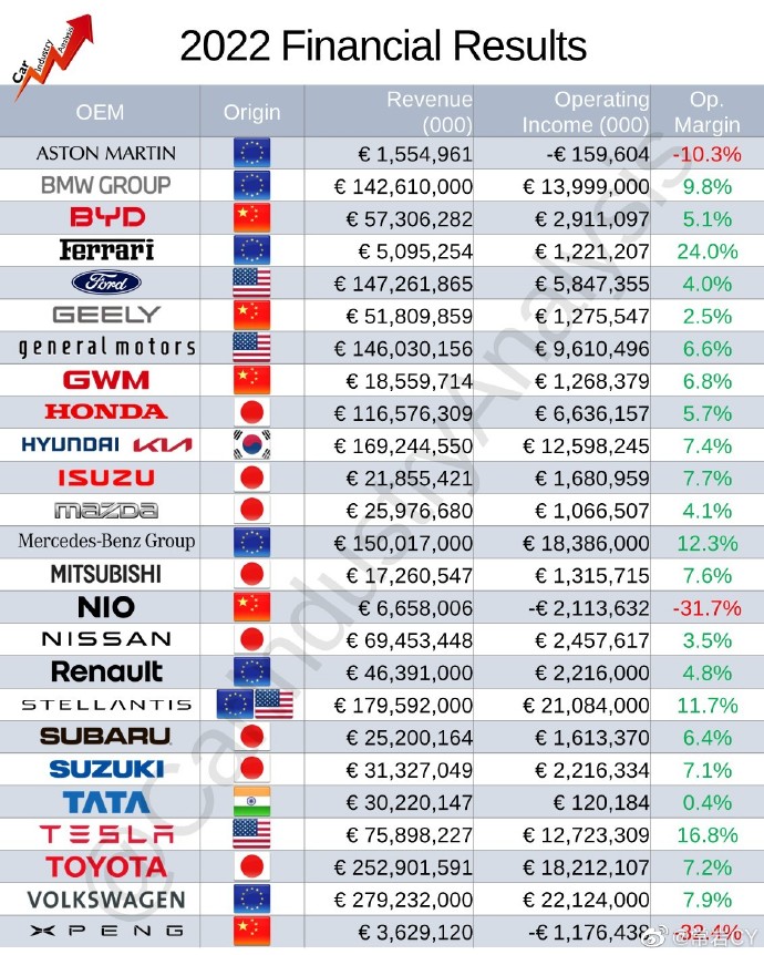下图是分析了 2022 年 1 月至 2022 年 12 月各地区热门汽车企业财报之后的有趣结果。