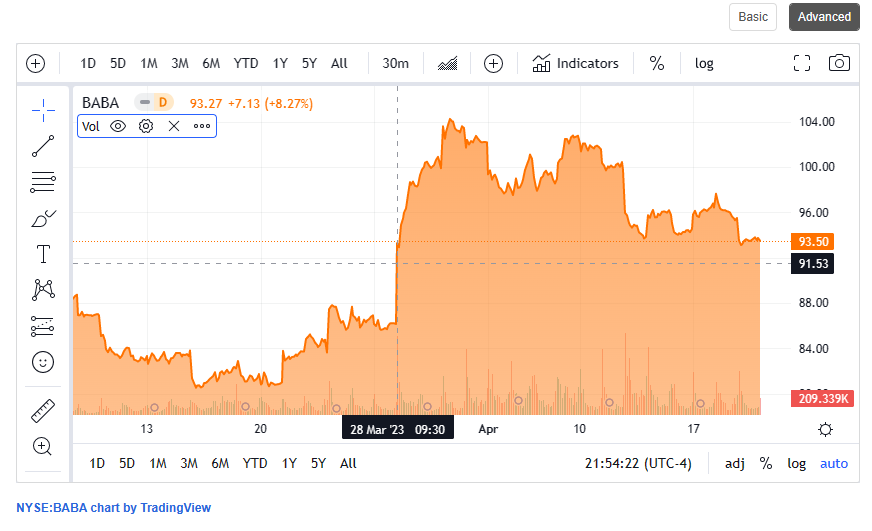 3月29日,阿里巴巴港股开盘大涨14.96%;美股方面,3月28日也以14.25%涨幅收盘,股价创下近10个月以来最大单日涨幅,市值涨超300亿美元。随后的连续三天,涨幅共计超过20%。