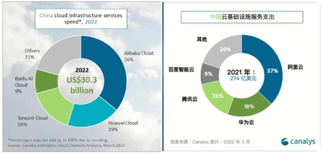 另一部分被市场大力看好的则是阿里的云业务。截至2022年12月31日止三个月,由阿里云及钉钉组成的云业务分部,经调整EBITA为人民币 356 百万元,2021年同期为人民币134百万元。此外,阿里云是还是国内首家盈利的云服务商。据公司财报显示,2021年第三季度阿里云营收达161亿元,调整后EBITA盈利2400万元。2022年,阿里云**国云市场份额的36%,排名第一,收入为752.97亿元,相比2021年增长了7.6%。在如今AI热火朝天、万物皆上云的时代作为市占率最高的阿里云不可能没机会发展。