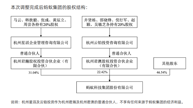 其实在经历“请喝茶”一劫后,蚂蚁集团便开始了长达半年的公司架构重组,最终在2021年6月3日作为一家持牌金融机构获批开业,严守新的规范再次面世,而其中最受严格管控的股权分配也随着公司不断的整改重组,效果显著。在公司最新公告中显示,此前拥有“一票否决权”的马云,投票权从53.46%大幅降至6.2%。