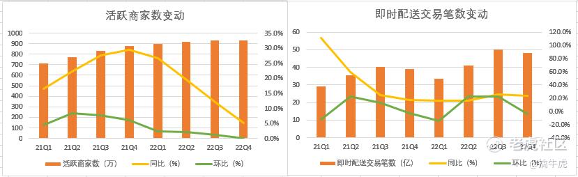 商家端,2022年活跃商家数量保持稳健增长,美团推出联合营销计划和流量扶植,通过线上运营补充线下经营在疫情期间受到的制约,重点运营“老字号”商户,帮助商家度过疫情难关。下一步美团将进一步提升低线城市渗透率,提升服务覆盖度。