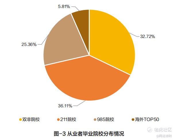 211、985高校、常春藤名校的毕业生占比高达67.28%;专业也从金融、财会、经济贸易、管理、信息技术类,逐渐拓展到其他专业,一些数学、生物、工程类的优秀毕业生开始进入金融业。