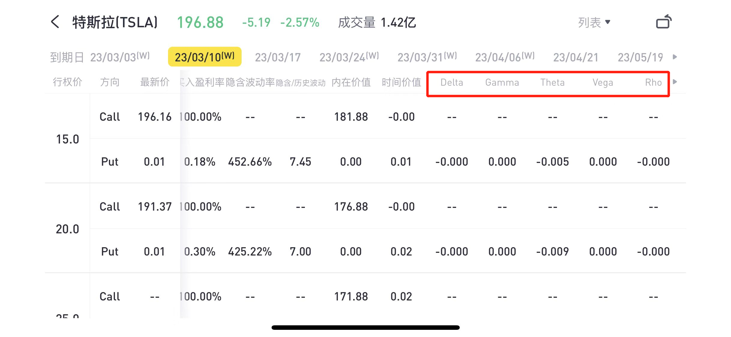 由于期权背后的底层资产是股票,所以股价变动,期权的价格也会变,而delta值衡量的是当股票价格变动一块钱,期权的价格变动多少钱?假设一个看涨期权的Delta为0.2,它表明如果股票价格上涨1美元,在其他条件不变的情况下,这张合约的价格就会上涨0.2美元。