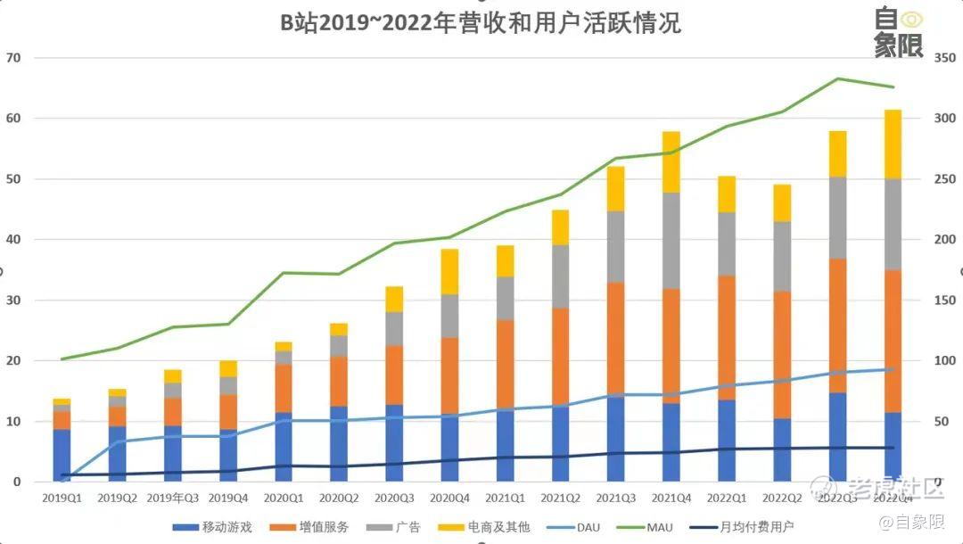 回过头来再看B站,它的商业化问题除了动作扭捏之外,也与之前的营收增长很大程度依靠不断破圈有关。即通过用户数量、DAU、MAU的增长来带动营收的增长。