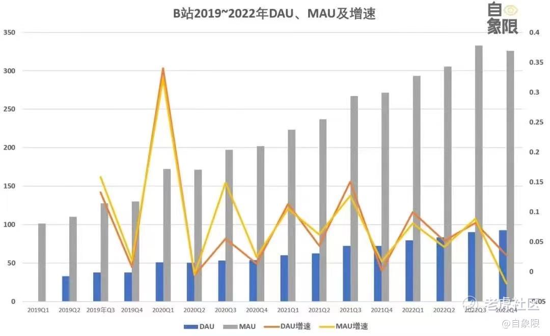 在这之前,B站CEO陈睿在3月初的财报电话会上表示,“B站2023年会提升DAU/MAU的比例,目前是28%,我们应该会提到30%。这个意味着更高的用户活跃度、更高的用户黏性,以及更大的用户商业价值。”