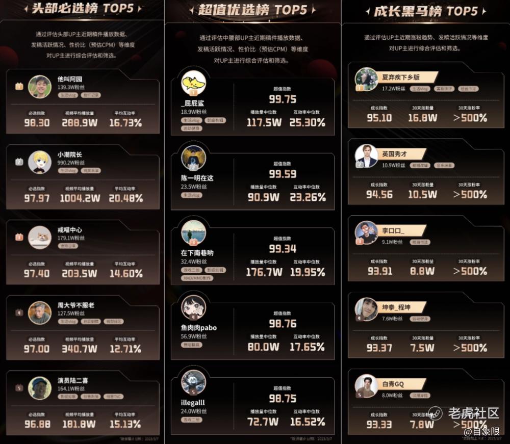3月9日,哔哩哔哩商业动态发布了一份《花火UP主优选榜》,分别从头部必选榜、超值优选榜、成长黑马榜三个维度为品牌方匹配不同的UP主合作目标。然后,b站又试图取消播放量的前台显示,改为用户消耗时长。