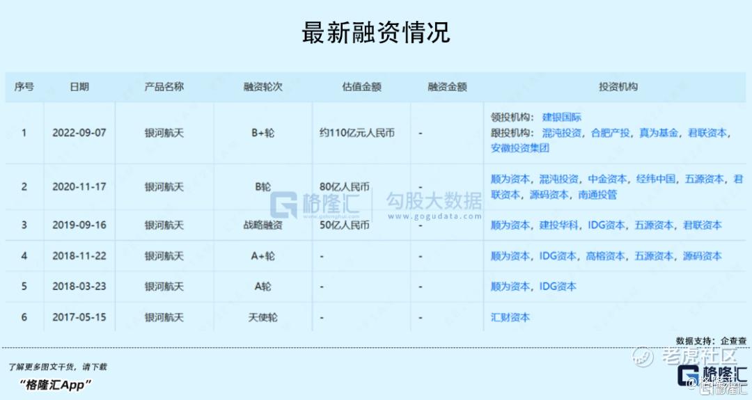 而从成立以来,银河航天便颇受资本青睐,进行了多轮融资,投资机构也包括顺为资本、中金资本、经纬中国、五源资本、IDG资本等。