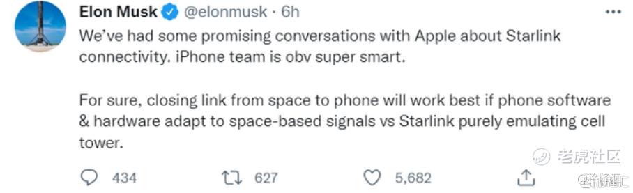 最近,马斯克发表推特称,SpaceX已与苹果就“星链”卫星服务引入手机连接事项进行了商议,由此可见,竞争态势不容小觑。