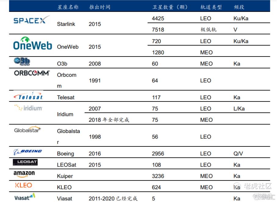 国外主流卫星互联网卫星星座计划图,图片来源:华泰研究