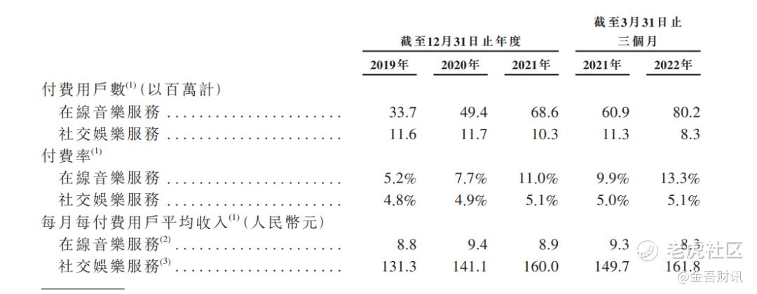 除了业绩的不理想,腾讯音乐在活跃用户数量增长方面也陷入了困境。截至2021年近三年中,在线音乐移动端月活跃用户数分别为6.53亿、6.44亿及6.22亿,社交娱乐移动端月活跃用户数2.40亿、2.40亿及2.03亿。今年一季度,二者均缩减至6.04亿和1.62亿户。