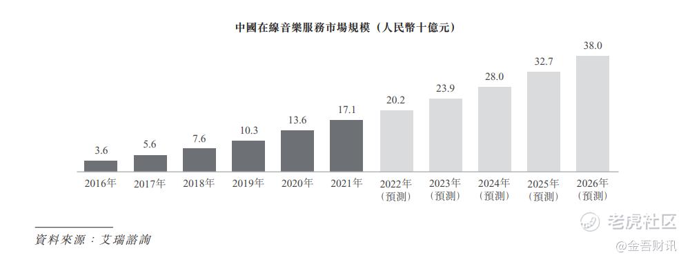 根据艾瑞咨询报告,按2021年总收入计算,中国是全球第二大在线音乐服务市场。根据艾瑞咨询报告,中国在线音乐服务的市场规模由2016年的36亿元增至2021年的171亿元,并预计于2026年达380亿元,展现出迅猛的历史增速以及未来巨大的增长空间。在中国,在线音乐服务主要通过音乐内容供给的会员订阅及相关广告服务来实现变现。