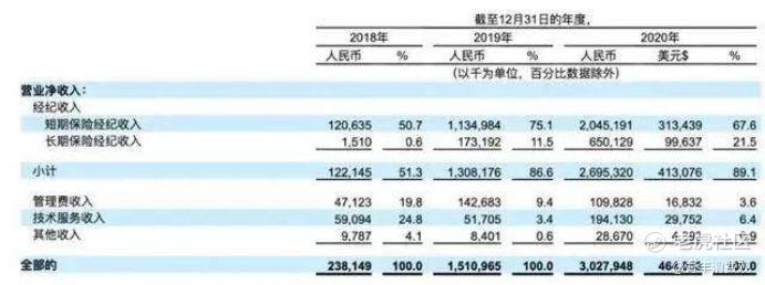 据水滴招股书显示,2020年,水滴实现营收30.28亿元人民币,较2019年15.11亿元同比增长100.4%;其中保险佣金收入占比高达89.1%。