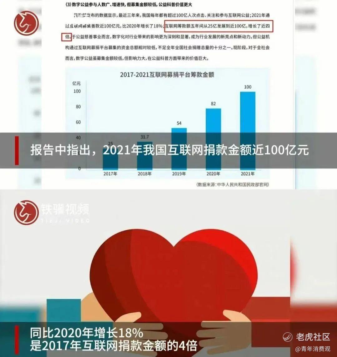 据《中国数字公益发展研究报道(2022)》指出,2021年我国互联网捐款金额近100亿元,同比2020年增长18%,是2017年互联网捐款金额的4倍。