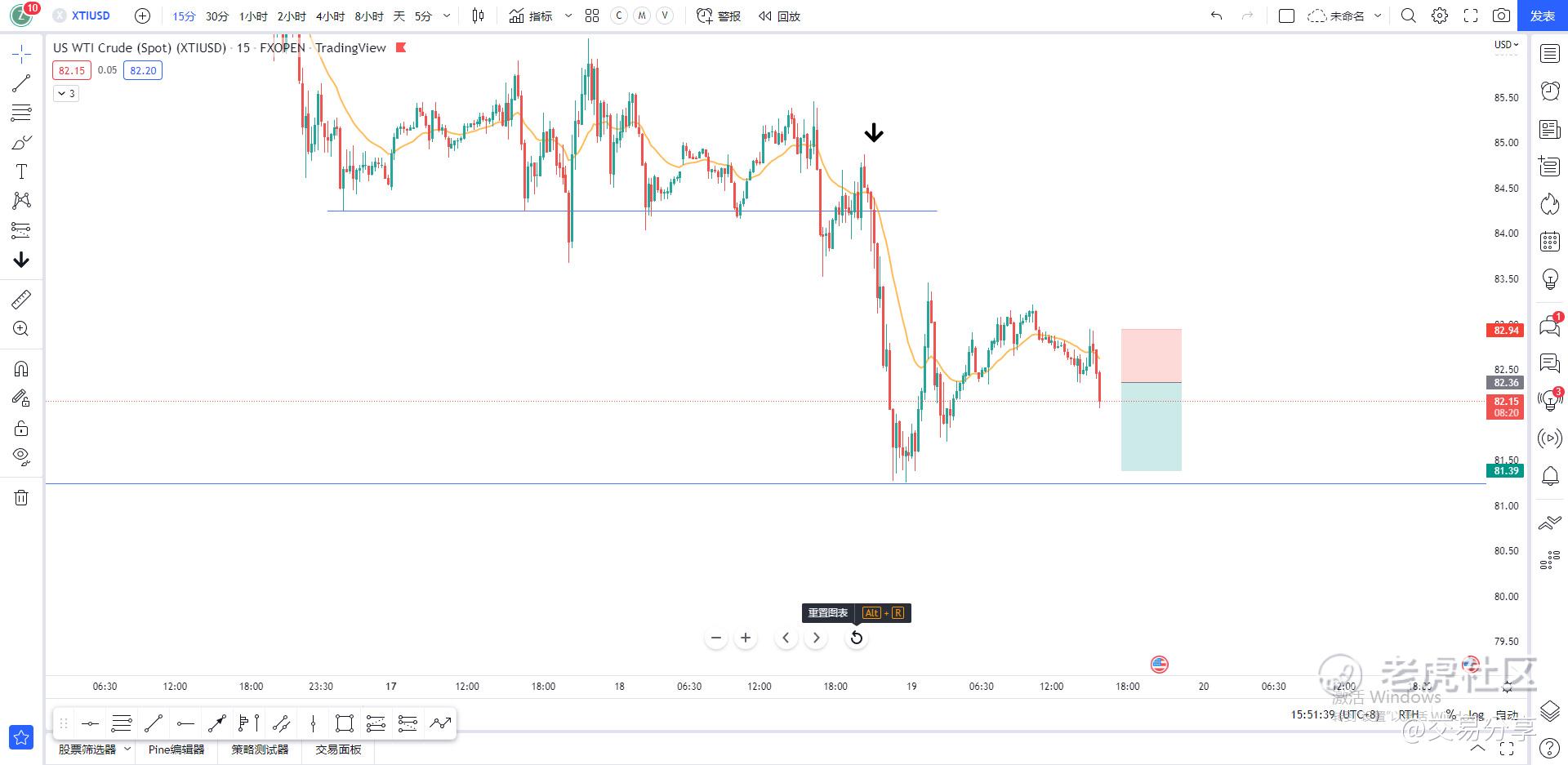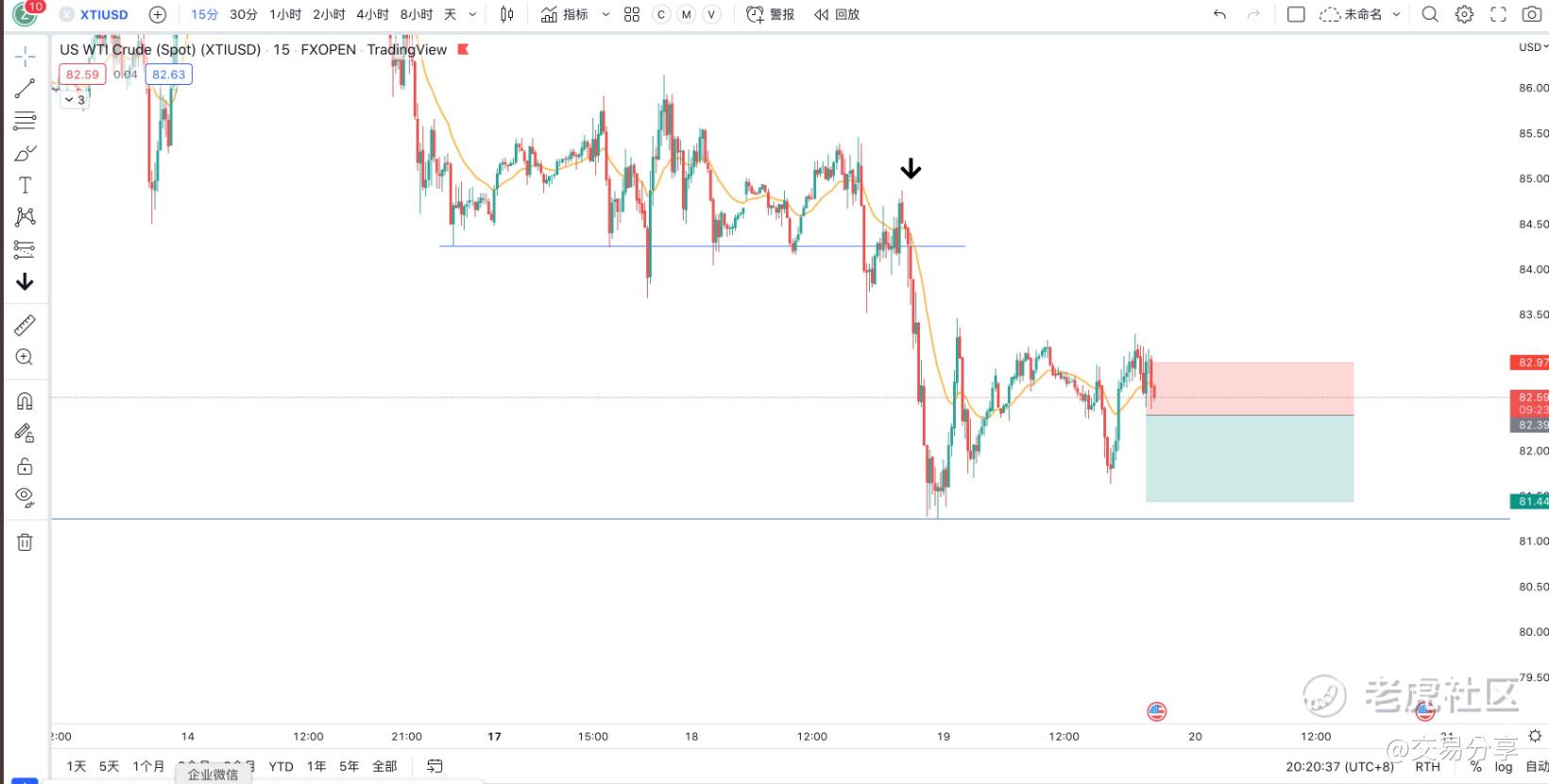 xtiusd的一次交易机会,这单就是个假突破骗炮,说下订单管理,这单在预计止盈位强烈反弹,看到这种走势后第四根大阳线就及时止损了,减少了一半的损失。