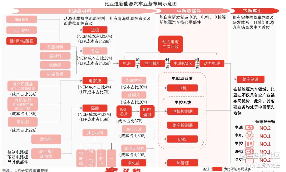 先来看比亚迪,相比特斯拉,比亚迪有2个特色,一是混动车型占总销量的比重过半,而特斯拉坚持纯电动,两类车型所面对的消费群体稍有不同,因此,15万的特斯拉未必能直接触动比亚迪基本盘;二是比亚迪强大的产业链布局,其自造电池、三电和芯片,拥有一定的成本优势。